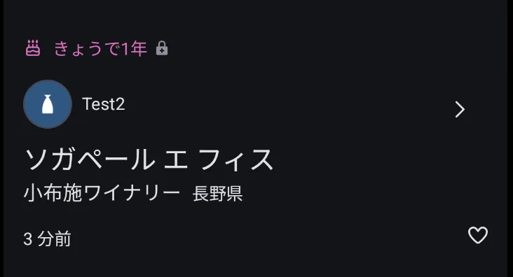 さけのわの登録記念日(Cake day)当日にチェックインすると、そのチェックインに特別な装飾が付きます。タイムラインやチェックイン詳細画面で、ケーキのアイコンとともに「きょうで○年」と表示されます。