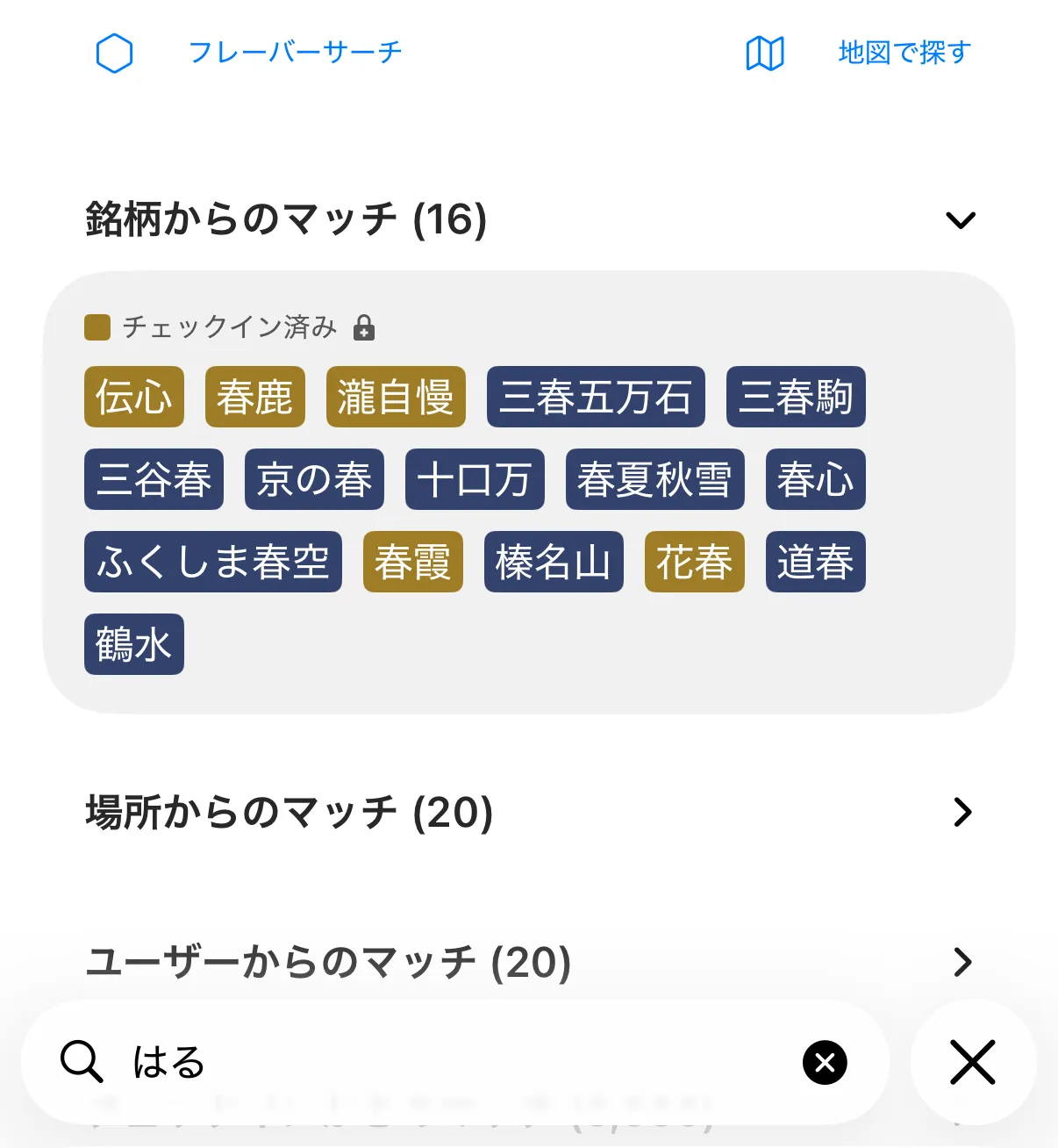 チェックインしたことのある銘柄(さけのわ+)